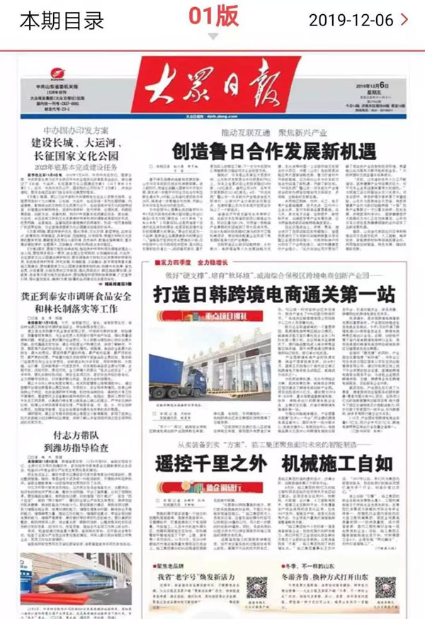 大众日报头版:点赞山东K8·凯发(中国)天生赢家·一触即发智能制造!